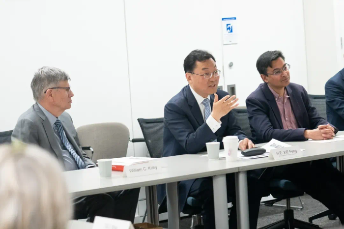 2024年4月19日,中國(guó)駐美國(guó)大使謝鋒訪問(wèn)哈佛大學(xué)費(fèi)正清中國(guó)研究中心,與該中心專家學(xué)者就中美關(guān)系深入交換意見(jiàn)。