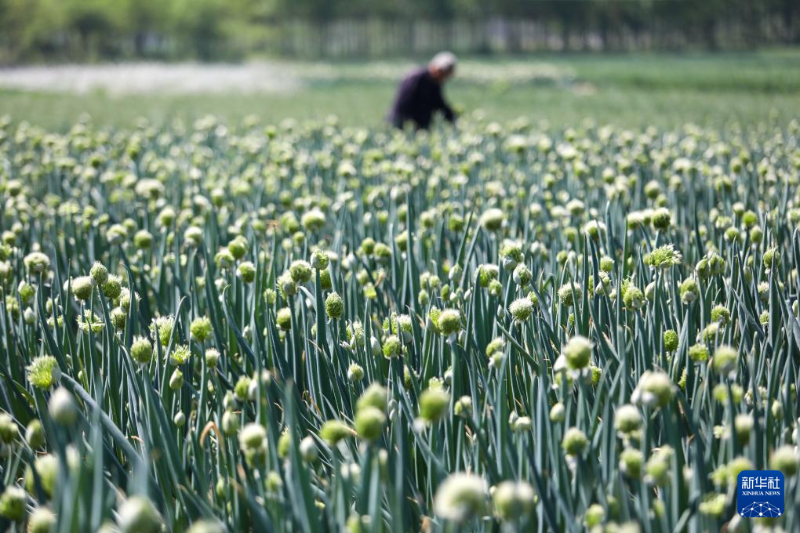 4月24日,農(nóng)民在山東省淄博市高青縣黑里寨鎮(zhèn)一處菜田里勞作。
