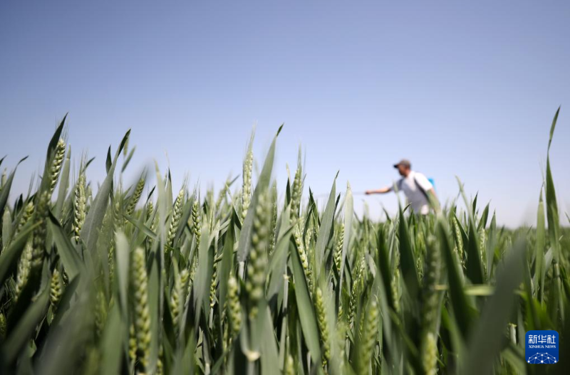 4月24日,山東省臨沂市郯城縣郯城街道農(nóng)民在麥田間勞作。