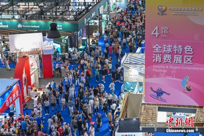 4月17日,海南??冢谒膶弥袊鴩H消費(fèi)品博覽會(huì)迎來社會(huì)公眾開放日,吸引大批民眾前來觀展,選購商品。中新社記者 駱云飛 攝