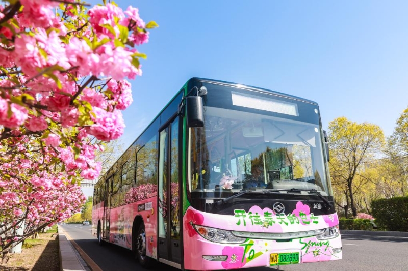 內(nèi)蒙古自治區(qū)呼和浩特市開(kāi)通了一條限時(shí)賞花免費(fèi)公交專線“開(kāi)往春天的巴士”,線路途經(jīng)多個(gè)文旅地標(biāo),游客們乘坐著精心裝扮的公交車,不僅能欣賞滿城怒放的榆葉梅,還能在任意站點(diǎn)上下車去景點(diǎn)參觀。