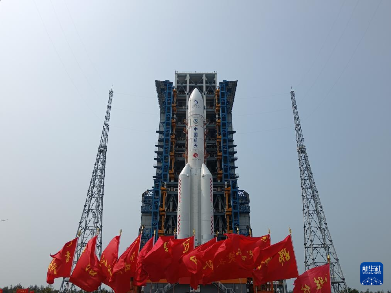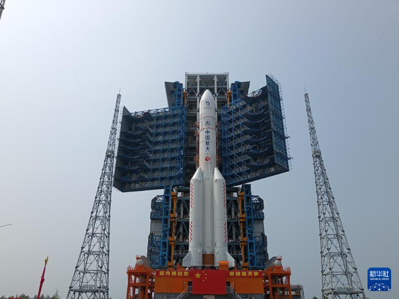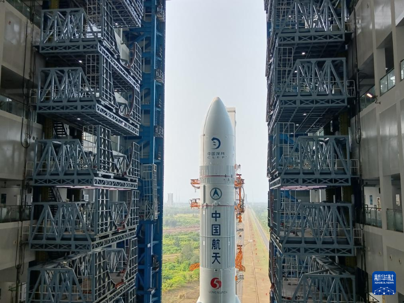 4月27日,嫦娥六號探測器和長征五號遙八運載火箭器箭組合體開始轉(zhuǎn)運。