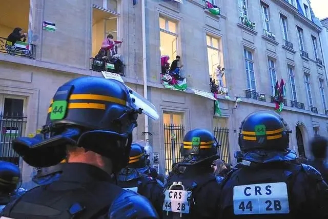 4月26日,法國(guó)巴黎政治學(xué)院發(fā)生支持巴勒斯坦的抗議活動(dòng),防暴警察前往該校。
