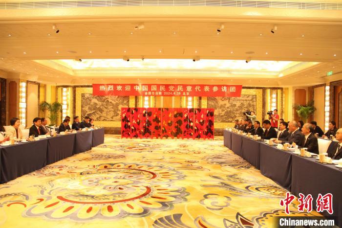 4月28日,中國(guó)國(guó)民黨民意代表參訪團(tuán)一行與臺(tái)商在北京座談。朱賀 攝