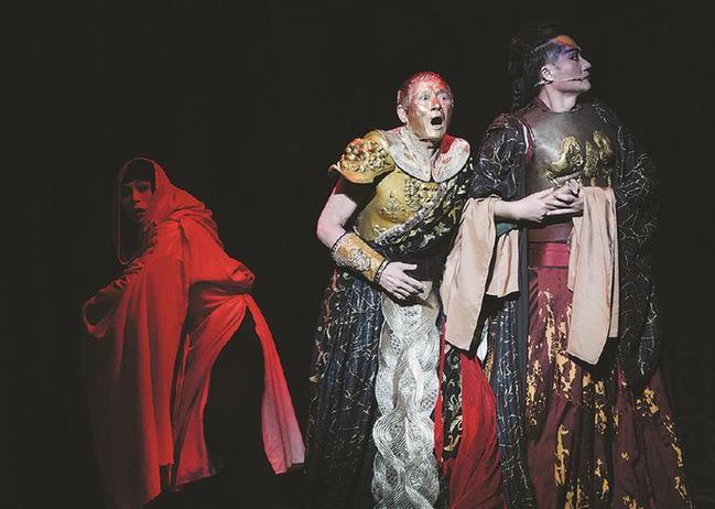 京昆新歌劇《凱撒》是根據(jù)經(jīng)典莎劇《凱撒大帝》進(jìn)行的當(dāng)代創(chuàng)作,滬臺(tái)藝術(shù)家吳興國(guó)、張軍首度合作。圖為劇照。(演出方供圖)