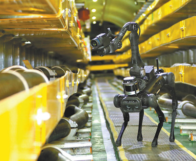 國(guó)產(chǎn)四足巡檢機(jī)器人在北京市豐臺(tái)區(qū)玉泉營(yíng)電纜隧道內(nèi)開(kāi)展地下輸電線(xiàn)路巡檢。