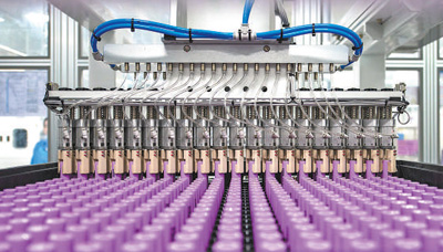 圖為浙江省東陽(yáng)市橫店鎮(zhèn)東磁高新產(chǎn)業(yè)園區(qū)的一處車(chē)間里,鋰電池自動(dòng)化生產(chǎn)設(shè)備正在運(yùn)轉(zhuǎn)。
