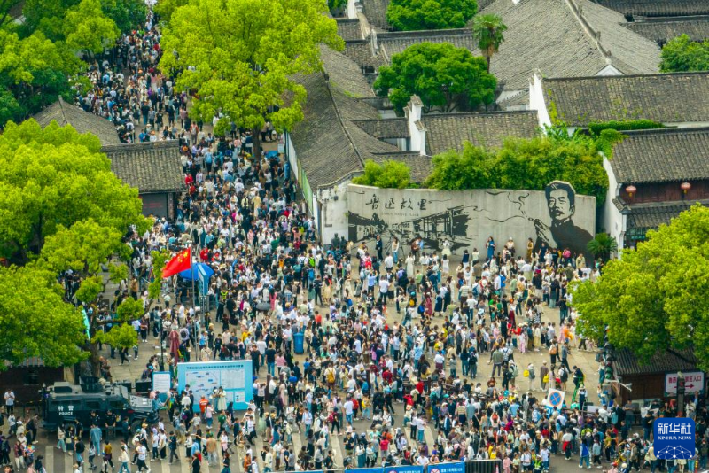 5月3日,游客在浙江省紹興市魯迅故里參觀游玩(無人機照片)。新華社發(fā)(張輝攝)