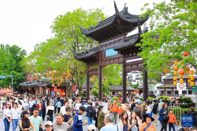 5月2日,游客在南京夫子廟景區(qū)游覽。新華社發(fā)(蘇陽攝)