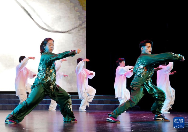 5月8日,在上海閔行區(qū)舉辦的“兩岸同根 太極一家”文化交流活動上,閔行的太極愛好者登臺表演。新華社記者 劉穎 攝