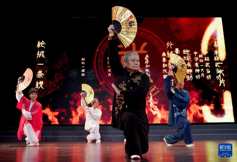 5月8日,在上海閔行區(qū)舉辦的“兩岸同根 太極一家”文化交流活動上,臺灣太極名家登臺表演。新華社記者 劉穎 攝