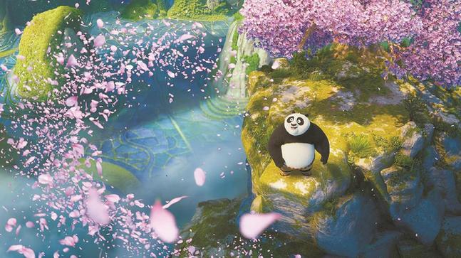 《功夫熊貓》系列對中國文化的選擇是以國際觀眾的欣賞為出發(fā)點(diǎn),拼貼了其最熟悉的兩個(gè)中國元素:熊貓+功夫。除了功夫之外,《功》系列對于中國山水、建筑、食物、風(fēng)俗等的使用也都是以國際觀眾熟悉為前提的靈活“拿來主義”。圖為《功夫熊貓4》劇照