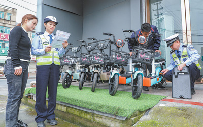 圖為在浙江省浦江縣,交警在仙華街道對(duì)電動(dòng)自行車登記服務(wù)站及銷售門店進(jìn)行質(zhì)量安全風(fēng)險(xiǎn)隱患排查。李建林?jǐn)z(人民視覺)