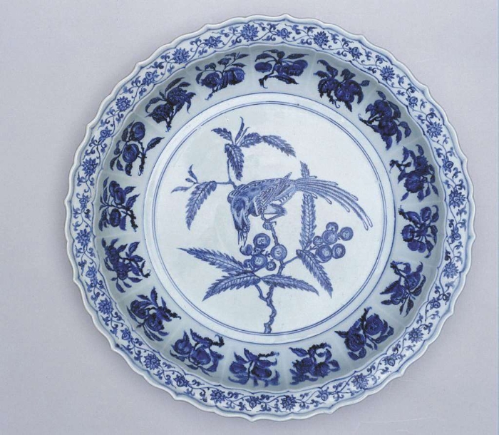 ▲ 明代青花枇杷綬帶鳥紋大盤