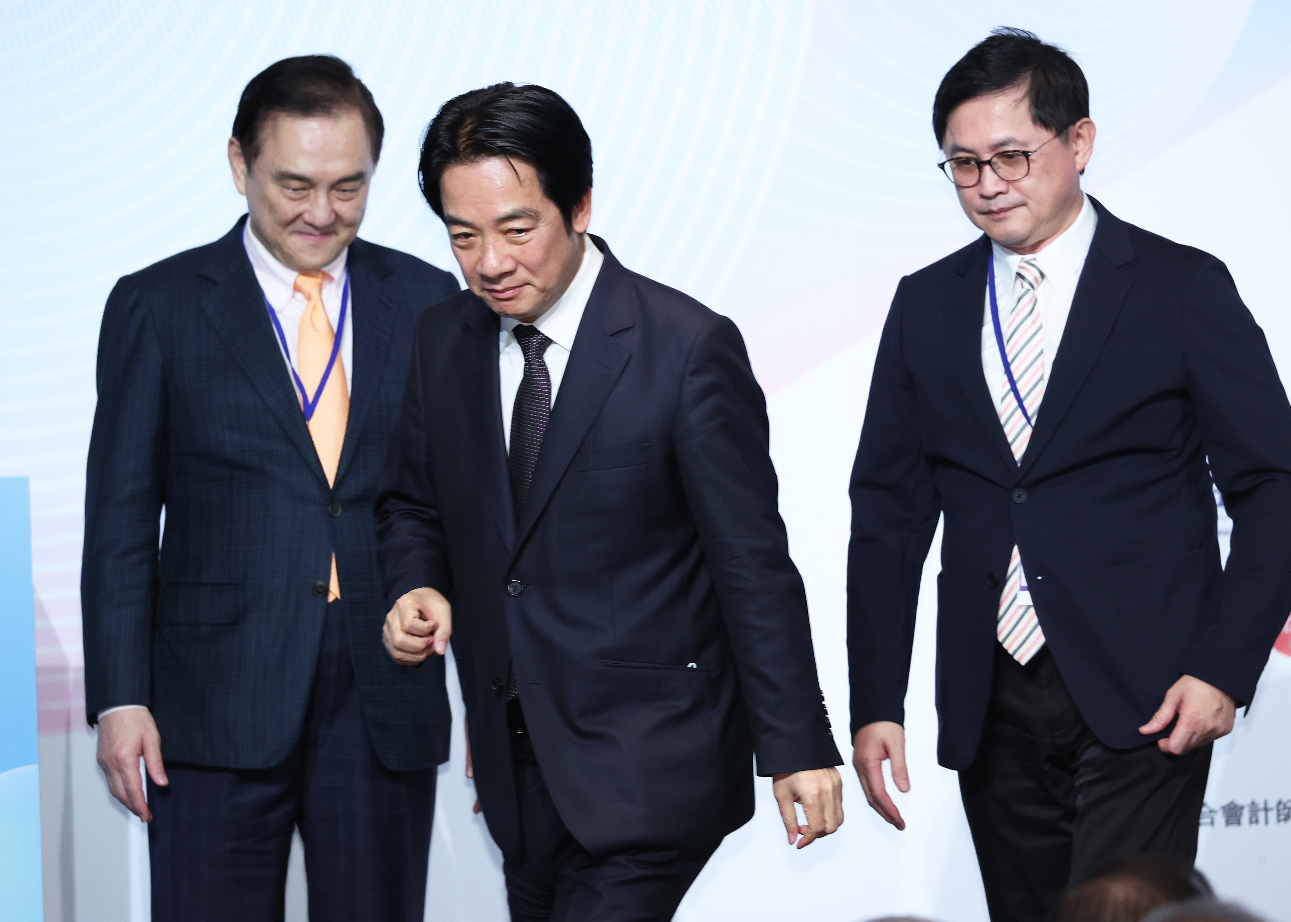 民進(jìn)黨智庫副董事長童子賢(左)、臺灣地區(qū)準(zhǔn)領(lǐng)導(dǎo)人賴清德(中)。(圖源:臺灣《聯(lián)合報》)