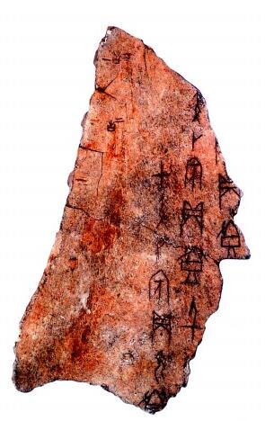 以“線”表流水。江河在大地上流淌會(huì)形成支流匯入干流的水系,甲骨文或以線條來(lái)描摹。如“(58)”字作(59),即今“流”字異體,字從水,左邊像(60)(不)之字,其實(shí)并非“不”字,而是河流、水系的象形字,因其與“不”字形近才誤隸定為“不”。卜辭中“(61)”與“疾”構(gòu)成“(61)疾”一詞,即“流疾”,是流行性疫病的意思?!埃?1)疾”也以合文形式出現(xiàn),寫(xiě)作(62),“(61)”省去了水旁。