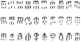 以“點(diǎn)”表液體。甲骨文除用S形曲線加點(diǎn)的構(gòu)形來(lái)表現(xiàn)流動(dòng)的水(也是共性的水)外,還用連續(xù)的點(diǎn)來(lái)表現(xiàn)各種液體。例如,“液”作(30),像滴瀝的水液之形;三點(diǎn)表多滴液體,上下排列示連續(xù)滴落之意。水性流動(dòng),故甲骨文以S形線條以象之;液體黏稠,甲骨文則以滴瀝之點(diǎn)以象之。這完全是一種根據(jù)事物特性的精妙構(gòu)形?!埃?1)”是將血液涂抹在祭品上的祭祀,字作(32)等形,從幾聲,小點(diǎn)代表血液。“(33)”或作(34),以人背上出汗液會(huì)意?!吧唷被蜃鳎?5),從口屰聲(兼表舌頭的伸縮),上面的小點(diǎn)為唾液?!耙住弊鳎?6),從“液”表聲,又兼表從器皿中傾出的液體之形。“醳”作(37)等形,從“液”表聲,又兼表米麹化為酒液之形?!搬m”指壓醩取酒,字作(38),從酉從泉,小點(diǎn)表示酒液像泉水一樣流出?!皸R”字作(39),像汁液從樹(shù)木上滴下之形。