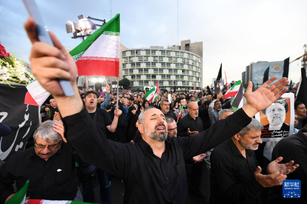 5月20日,在伊朗首都德黑蘭,民眾悼念直升機墜毀事件遇難者。(圖源:新華社)