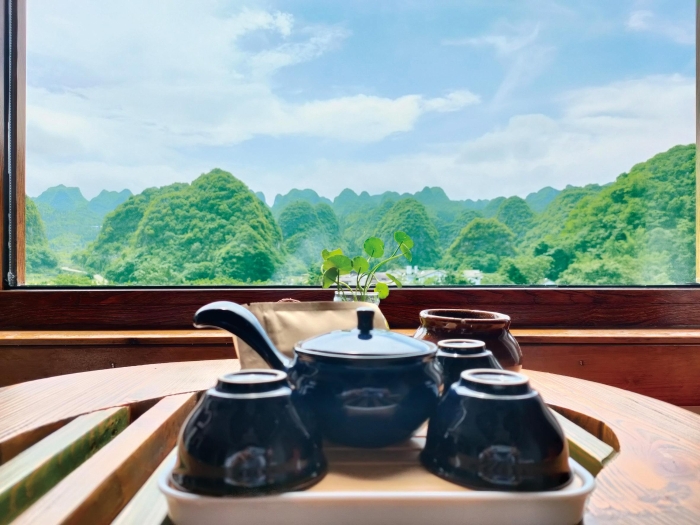 ▲ 品茗賞景,茶文化的芳香潤澤生活。圖為貴州萬峰林。
