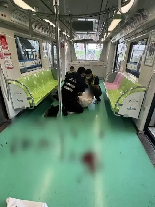 據(jù)了解,20歲嫌犯洪某穿著咖啡色上衣,從綠線水安宮站上車后,先將物品放到置物架上,先持菜刀無差別攻擊乘客,被搶走后又掏出2把小刀攻擊乘客,造成2名乘客受傷,洪嫌自己也掛彩,3人均送往林新醫(yī)院治療。經(jīng)查,洪男共攜帶1把菜刀、2把水果刀在身上。