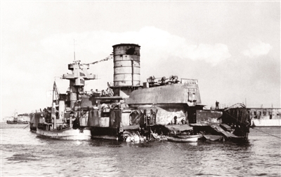 10月31日,德軍在進攻列寧格勒時,意外遭到強火力襲擊。不明所以的德軍在進行戰(zhàn)術偵察后,意外發(fā)現(xiàn)竟是只剩半截的“馬拉”號。原來,“馬拉”號雖被炸斷,但艦體后側動力艙段尚且完好,它憑借自身動力沖灘后,擱淺在港口淺水區(qū)。由于該區(qū)域海水深度僅11米,“馬拉”號艦體大部分結構仍處于水面上,在維修人員的努力下,不僅恢復了艦體供電,還成功修復3號和4號炮塔,最終作為海上浮動炮臺繼續(xù)在喀瑯施塔得附近擔任海防和對地炮擊任務,幫助列寧格勒阻止德軍進攻。