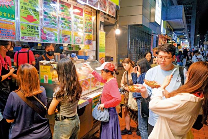 不少內(nèi)地旅客對(duì)香港的街頭美食深感興趣。(大公報(bào))