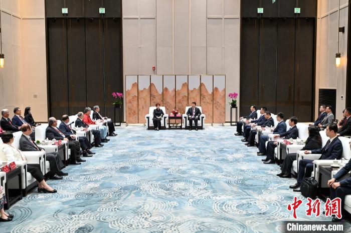 中新社廣州5月28日電 中共中央臺(tái)辦、國(guó)務(wù)院臺(tái)辦主任宋濤28日在廣州會(huì)見(jiàn)中國(guó)國(guó)民黨前主席、中華青雁和平教育基金會(huì)董事長(zhǎng)洪秀柱等第四屆“攜手圓夢(mèng)——兩岸同胞交流研討活動(dòng)”嘉賓代表。