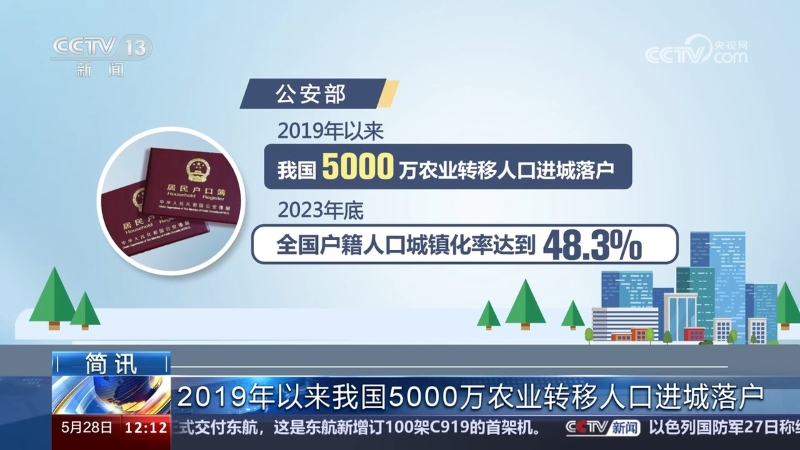 公安部27日發(fā)布數(shù)據(jù),2019年以來(lái),我國(guó)5000萬(wàn)農(nóng)業(yè)轉(zhuǎn)移人口進(jìn)城落戶,2023年底全國(guó)戶籍人口城鎮(zhèn)化率達(dá)到48.3%。目前,東部地區(qū)除個(gè)別超特大城市,中西部地區(qū)除個(gè)別省會(huì)(首府)城市以外,全面放寬放開(kāi)落戶限制。