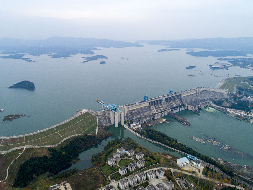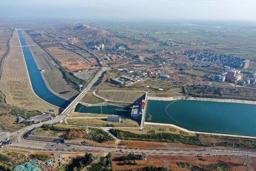 位于河南南陽淅川縣的南水北調中線工程渠首(2019年12月9日攝,無人機照片)。(圖源:新華社)