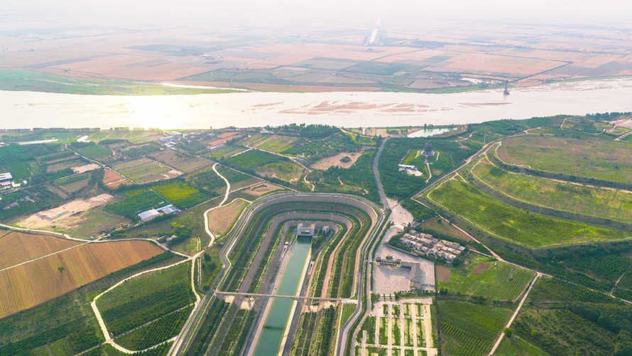 這是跨越黃河的南水北調中線穿黃工程(2020年5月26日攝,無人機照片)。(圖源:新華社)