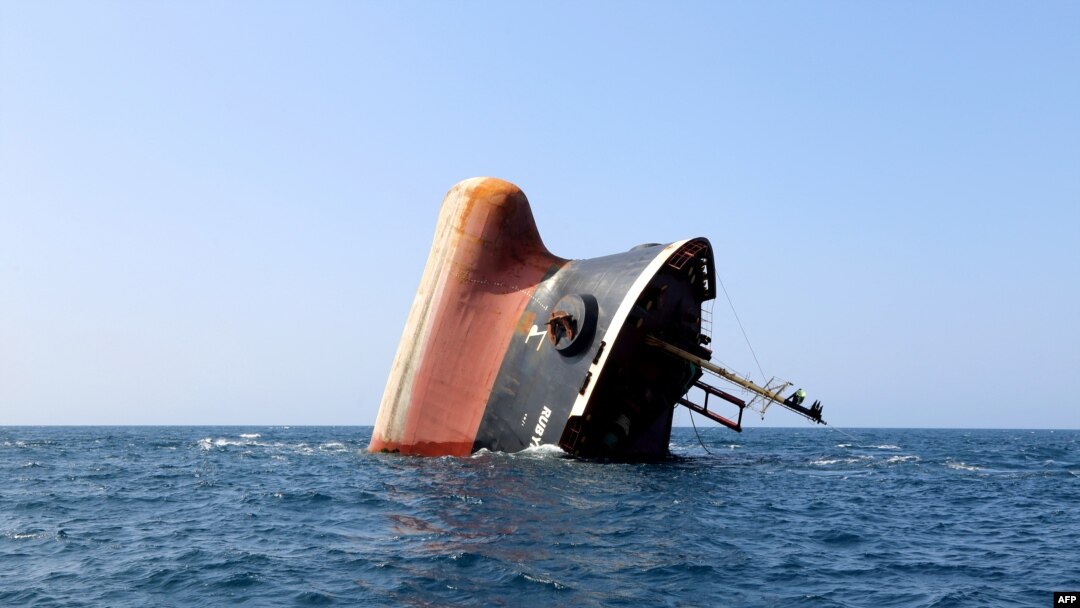 被胡塞武裝導(dǎo)彈擊中的英國(guó)“紅寶石”號(hào)貨輪3月7日在紅海沉沒(méi)。(圖源:法新社)