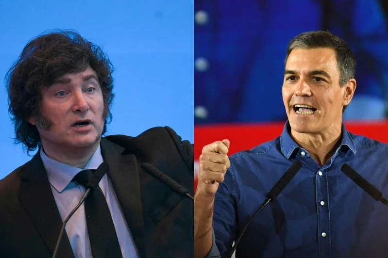 阿根廷總統(tǒng)米萊(左)、西班牙首相桑切斯(右)。(圖源:法新社)