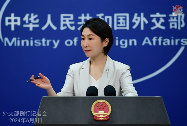 中新網(wǎng)北京6月3日電 (記者 黃鈺欽 郭超凱)中國外交部發(fā)言人毛寧6月3日主持例行記者會。