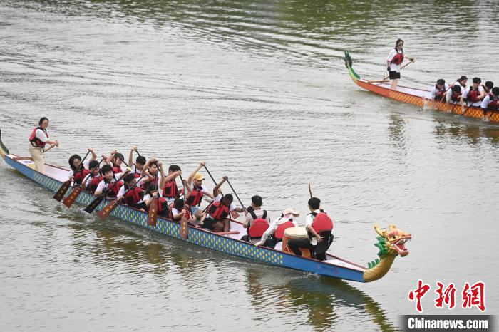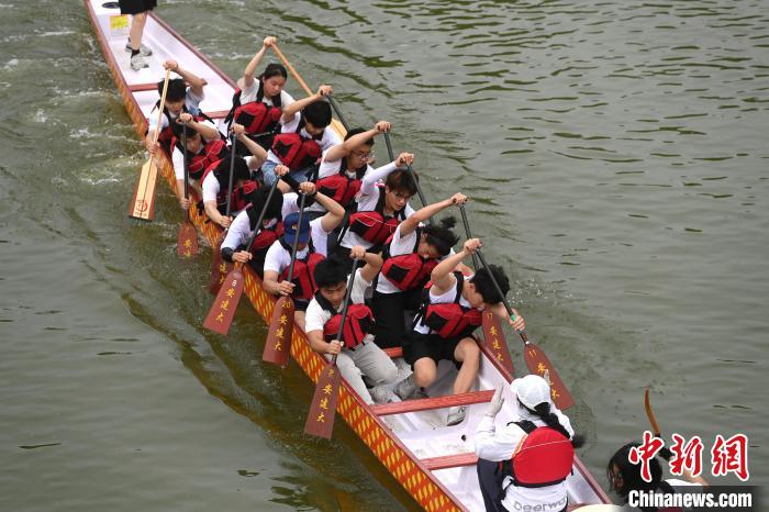 自2023年起,該校創(chuàng)新性地將龍舟課程納入體育課選修系統(tǒng),通過課程讓學(xué)生們對(duì)民族體育的龍舟有了更全面的認(rèn)識(shí),有效地提升學(xué)生的團(tuán)隊(duì)協(xié)作和人際交往能力。韓蘇原 攝