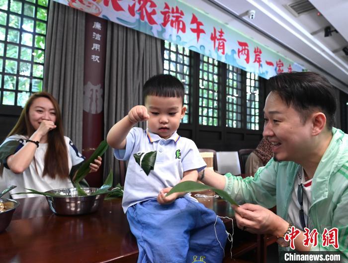 端午假期,10余對兩岸婚姻家庭齊聚合肥包公園,開展包粽子、掛香包等端午民俗活動,用“小家”連接“大家”。