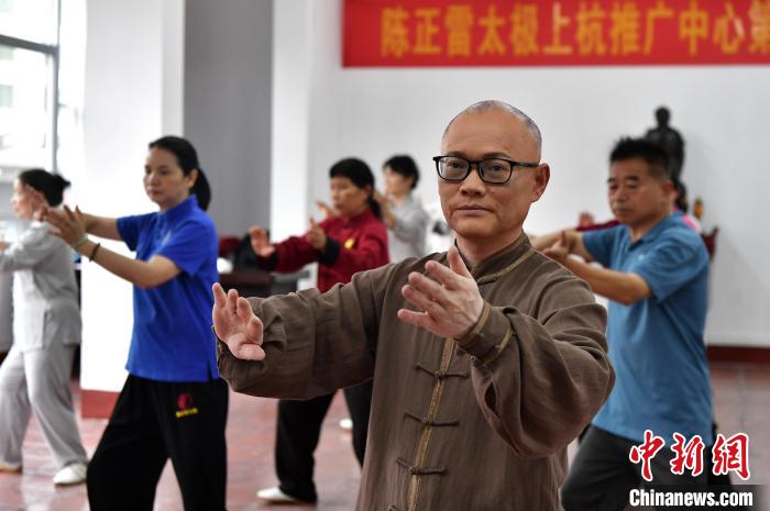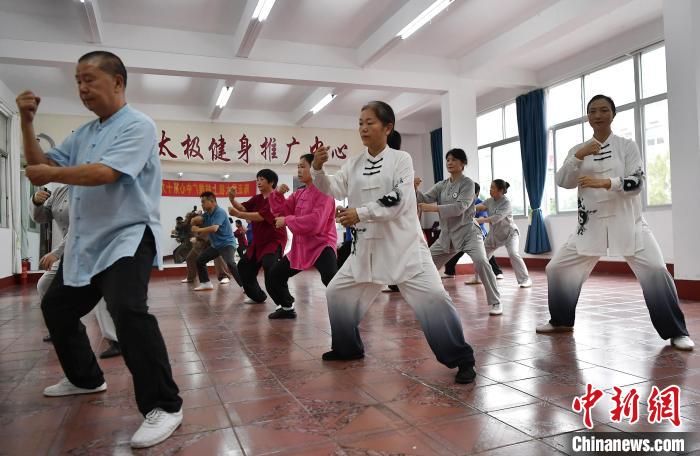 “一脈相承 兩岸情深”,中新社記者近日走進龍巖市閩臺客家太極文化交流基地——上杭縣太極拳協(xié)會時,這八個大字赫然入目。練功房里,當?shù)靥珮O拳愛好者正在打改編版的陳氏太極拳老架一路。