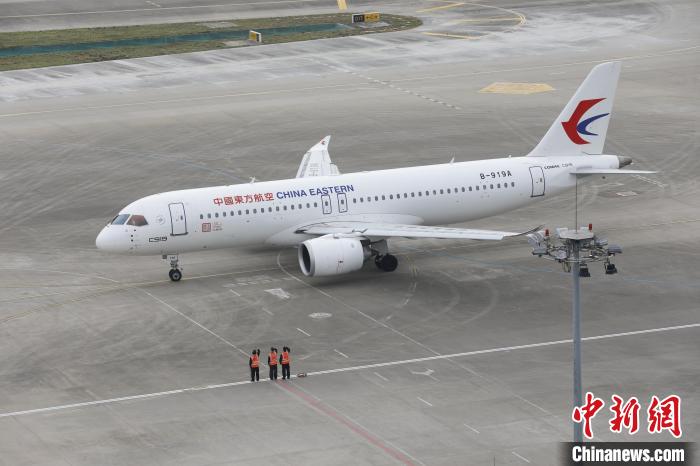 6月14日,國產(chǎn)大飛機C919開啟第四條商業(yè)定期航線運營。東方航空供圖