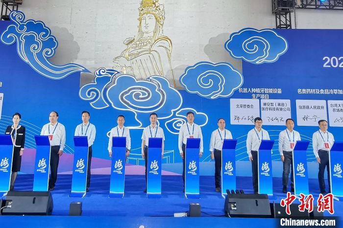 當(dāng)天,莆臺(tái)經(jīng)貿(mào)合作項(xiàng)目簽約活動(dòng)同期舉行,27個(gè)莆臺(tái)經(jīng)貿(mào)合作項(xiàng)目現(xiàn)場(chǎng)簽約,總投資達(dá)74.3億元人民幣,簽約項(xiàng)目涵蓋新型功能材料、高端裝備、食品、文旅經(jīng)濟(jì)、生命健康、臨港產(chǎn)業(yè)等多個(gè)領(lǐng)域。