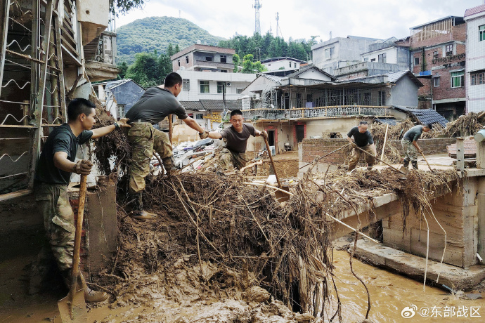 近日,廣東省梅州市遭遇洪水侵襲,受災地區(qū)出現(xiàn)房屋倒塌、道路受阻等險情。洪水退后,火箭軍某部官兵積極投入災后重建工作,幫助人民群眾恢復生產生活秩序。(王濤、王黎明、舒向陽、方明輝)