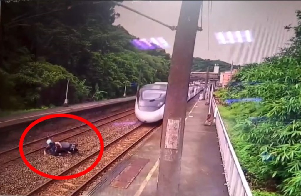 基隆市一男子騎摩托車摔落軌道,差點遭臺鐵“新自強號”輾過。(圖片來源:臺灣“中時新聞網(wǎng)”)