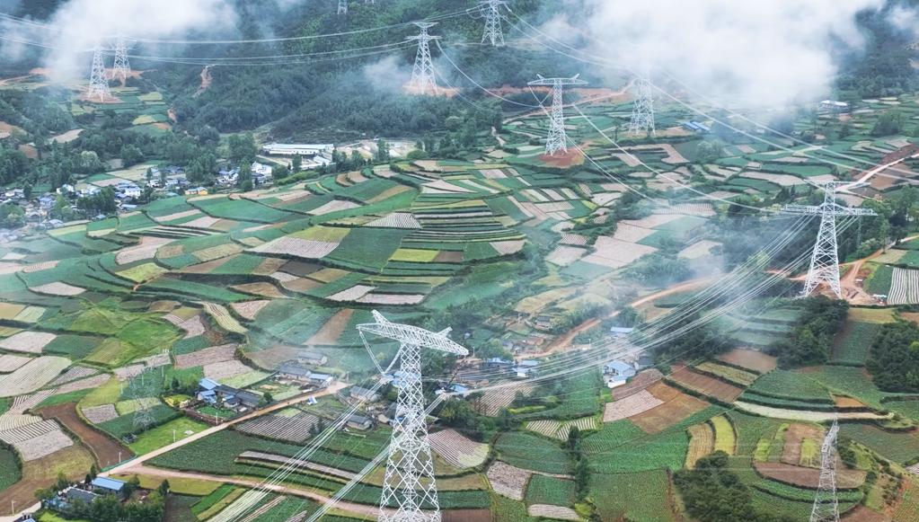 白鶴灘—浙江特高壓工程是我國西電東送重點(diǎn)工程。圖為架設(shè)在崇山峻嶺間的白鶴灘—浙江±800千伏特高壓直流輸電線。(圖源:新華社)