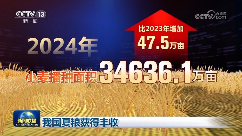 國(guó)家統(tǒng)計(jì)局7月12日發(fā)布的數(shù)據(jù)顯示,2024年,全國(guó)夏糧總產(chǎn)量為14978萬(wàn)噸,合2996億斤,比2023年增加72.5億斤,增長(zhǎng)2.5%。全國(guó)夏糧獲得豐收。