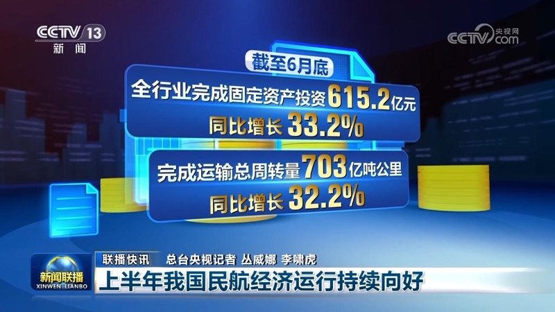 記者7月12日從中國(guó)民航局了解到,上半年,我國(guó)民航經(jīng)濟(jì)運(yùn)行穩(wěn)中有進(jìn)、持續(xù)向好。截至6月底,全行業(yè)完成固定資產(chǎn)投資615.2億元,同比增長(zhǎng)33.2%,完成運(yùn)輸總周轉(zhuǎn)量703億噸公里,同比增長(zhǎng)32.2%,航空運(yùn)輸國(guó)內(nèi)和國(guó)際市場(chǎng)規(guī)模均超過(guò)2019年同期。國(guó)際客運(yùn)規(guī)?;謴?fù)至2019年同期的81.7%。