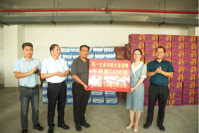 近期,江西多地遭遇嚴(yán)重洪澇與地質(zhì)災(zāi)害,災(zāi)情牽動(dòng)江西臺(tái)商臺(tái)企的心。臺(tái)企統(tǒng)一集團(tuán)心系災(zāi)區(qū),積極與江西省臺(tái)辦協(xié)商,向修水縣洪澇災(zāi)區(qū)捐贈(zèng)方便面、礦泉水各1000箱,價(jià)值約10萬元,為災(zāi)區(qū)群眾出一份力、獻(xiàn)一份愛心。7月11日,捐贈(zèng)儀式在修水縣舉行,統(tǒng)一企業(yè)華中區(qū)行政支持中心總監(jiān)李榮輝,九江市臺(tái)辦副主任汪海洋,修水縣委常委、統(tǒng)戰(zhàn)部部長(zhǎng)董國(guó)祥,修水縣副縣長(zhǎng)徐愛林等參加捐贈(zèng)儀式。
