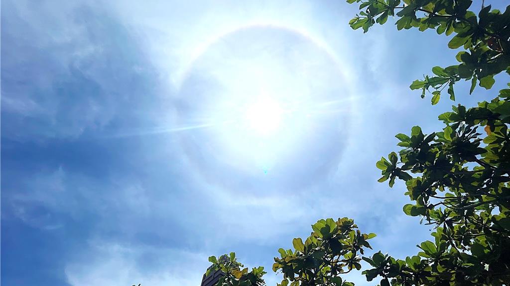 臺東氣象站表示,卷層云未消散前均可見日暈現(xiàn)象,也提醒民眾透過指縫觀看,勿肉眼直視,避免損傷視力。