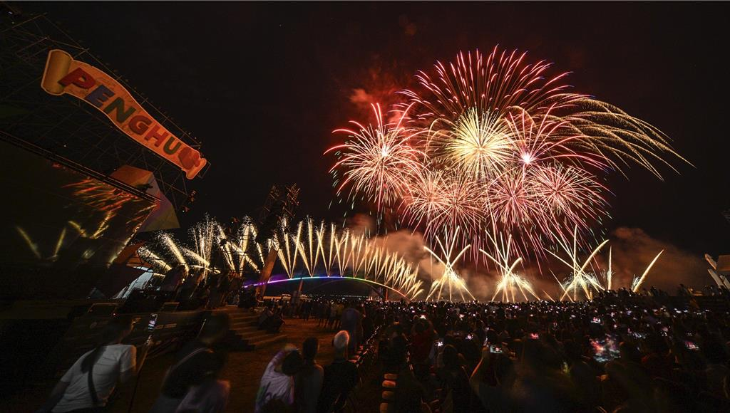 圖為16日晚上花火節(jié)的花火正常施放。(澎湖縣政府提供/許逸民澎湖傳真)