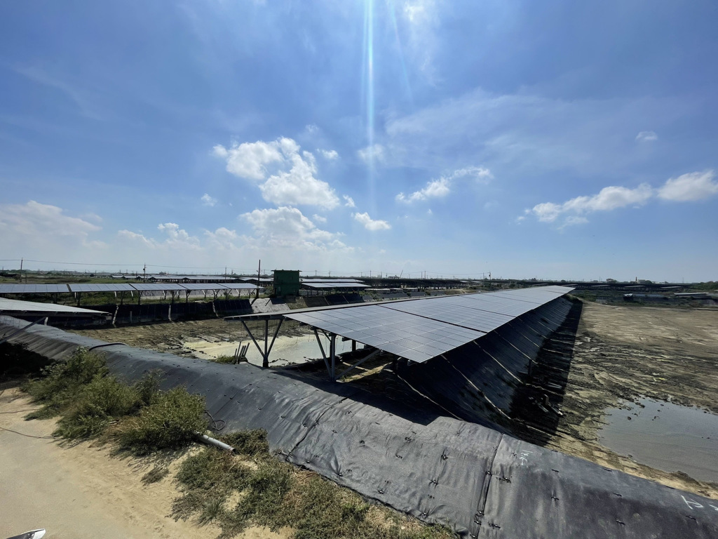 圖為魚塭漁電共生光電板盡量設(shè)于岸堤,減少遮蔽于池面積。(圖源:臺(tái)灣“中時(shí)新聞網(wǎng)”)
