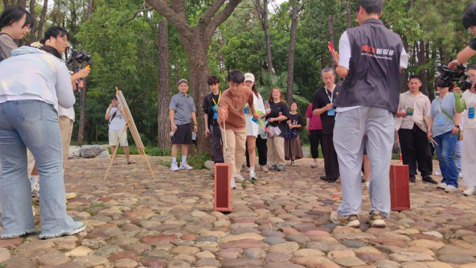 兩岸嘉賓體驗傳統(tǒng)體育項目“投箭入壺”