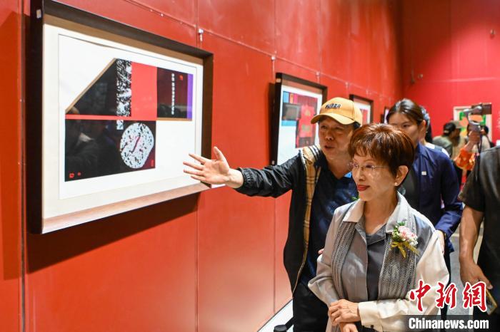 7月14日,中國國民黨前主席、中華青雁和平教育基金會董事長洪秀柱在云南昆明觀看李志銘(臺灣)書畫作品收藏展?!≈行戮W記者 李嘉嫻 攝