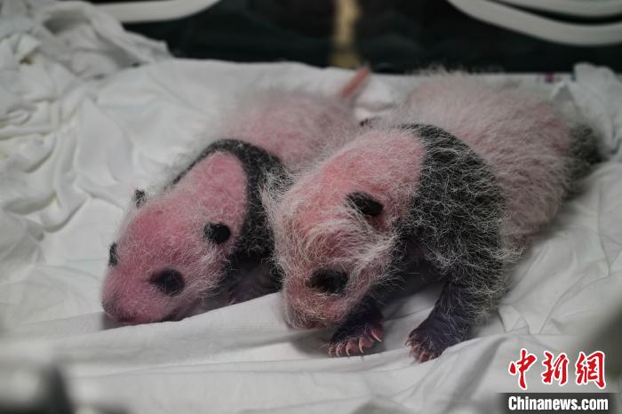 大熊貓“盼青”的雙胞胎幼仔。(資料圖)李傳有 攝